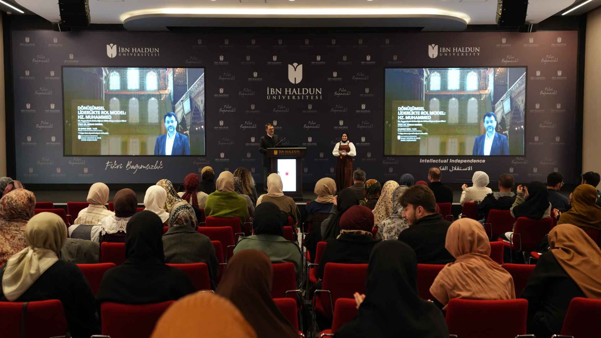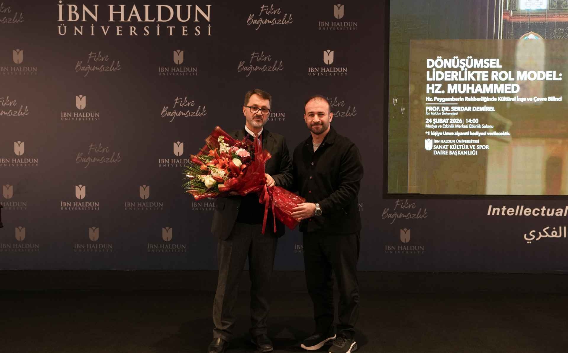 The "Role Model in Transformational Leadership: Prophet Muhammad" program, organized by the Department of Arts, Culture and Sports, was held on Tuesday, February 24, 2026, with the participation of students. The conference addressed the Prophet Muhammad's exemplary role in cultural construction and environmental awareness, while the keynote speaker, Serdar Demirel, shared important insights on value-oriented leadership with the participants. At the end of the program, participants received commemorative badges, and a raffle was held, with one student winning a pilgrimage to Umrah.