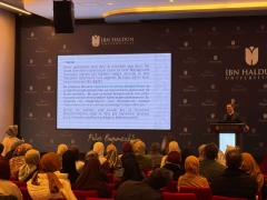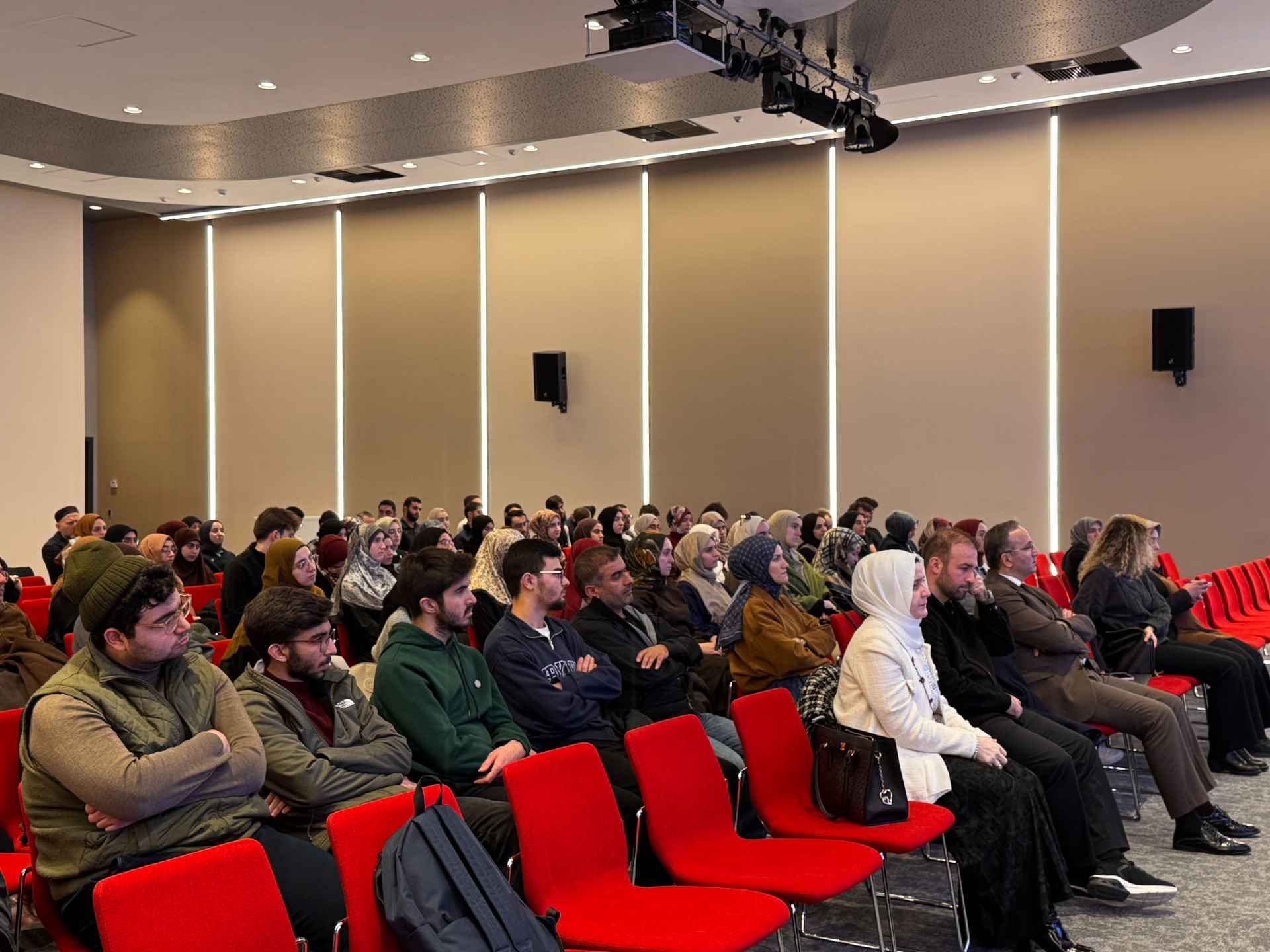 Sanat, Kültür ve Spor Daire Başkanlığı tarafından düzenlenen “Dönüşümsel Liderlikte Rol Model: Hz. Muhammed” programı, 24 Şubat 2026 Salı günü öğrencilerin katılımıyla gerçekleştirildi. Konferansta Hz. Muhammed’in kültürel inşa ve çevre bilinci eksenindeki örnekliği ele alınırken, ana konuşmacı Serdar Demirel katılımcılarla değer odaklı liderlik anlayışına dair önemli paylaşımlarda bulundu. Program sonunda katılımcılara hatıra rozet takdim edilirken, yapılan çekilişle bir öğrenciye Umre ziyareti hediye edildi.