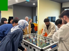 "Spor ve Oyun Kulübü, 19 Kasım 2025 tarihinde gerçekleştirilen Langırt Turnuvası ile öğrenciler, akademik kadro ve idari personeli aynı masa etrafında buluşturarak kampüs içindeki etkileşimi güçlendiren keyifli bir atmosfer oluşturdu. Turnuva, rekabetin ötesine geçerek farklı birimlerden bireylerin dostluk, saygı ve takım ruhunu pekiştirmesine olanak sağladı.